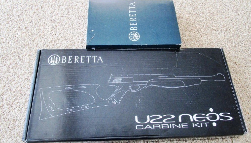This Beretta Kit allows U22 Neos pistols to be converted into compact carbine, .22LR caliber, 16 1/4" Barrel Length, Truglo fiber optic front sight with fully adjustable rear aperture sight, Stock & Barrel Assembly, Integral Weaver Rail. The U22 Neos carbine kit offers a shoulder stock and barrel that turns the pistol into a handy, accurate long gun. Without special tools, you can return it to pistol configuration. The kit includes a long 16 1/4” barrel and a stock that replaces the pistol grip making the Neos the most advanced, flexible plinker handgun.